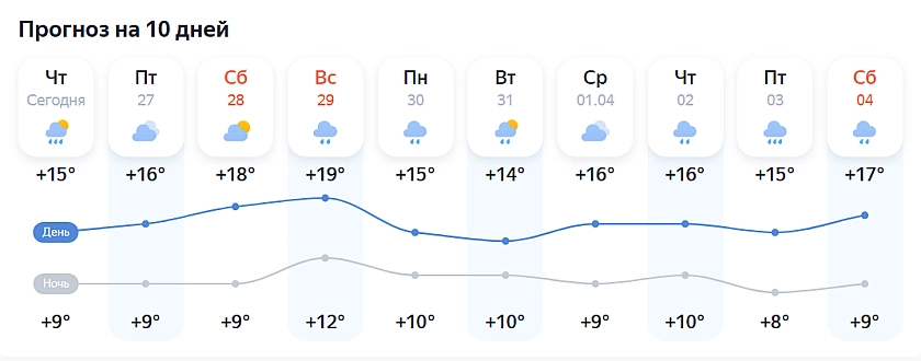 Среднесуточные показатели держатся примерно на уровне +11…+13 градусов, то есть нужный температурный минимум уже достигнут и, если прогноз не изменится, можно ожидать, что устойчивое потепление продержится нужные пять дней. Это значит, что формально условие для отключения отопления может быть выполнено уже к 1–2 апреля.